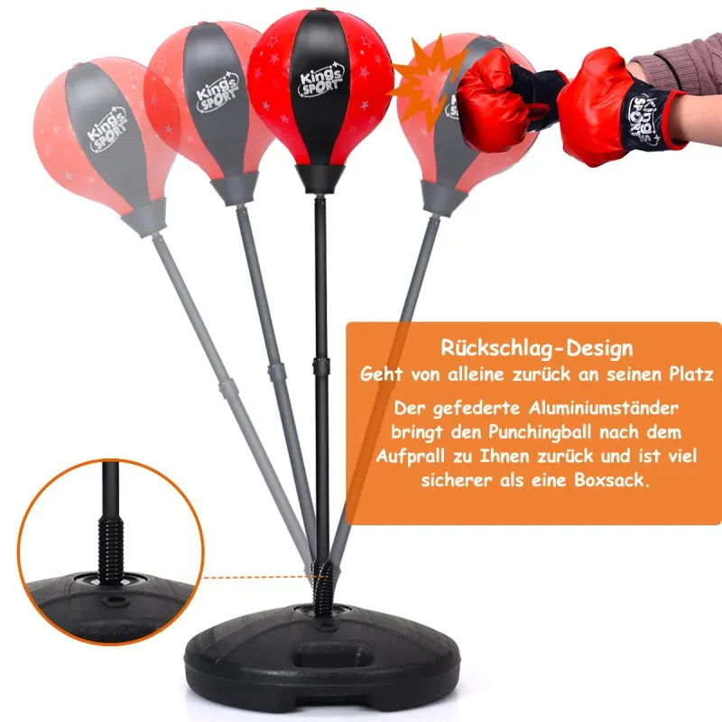 Milujeme fitness a chápeme, že udržiavanie zdravého životného štýlu a každodenné cvičenie si vyžaduje odhodlanie a nasadenie, aby sme sa udržali vo forme. Z tohto dôvodu sme vyvinuli ideálneho tréningového partnera, ktorý deťom priblíži zdravý a aktívny životný štýl, a boxovacia súprava vám poskytne všetko, čo potrebujete na skvelý tréning boxu. Boxovací stojan je výškovo nastaviteľný pre všetky vekové kategórie a potreby. Vyrobený s dôrazom na detail a z vysokokvalitných materiálov je mimoriadne odolný a odolný voči opotrebovaniu. Vďaka silnej a odolnej pružine boxovacie vrece vydrží aj tie najtvrdšie údery a vždy sa odrazí do pôvodného tvaru. Atribút: Pre silné telo - Let'spunch! Dobré pre zdravie a koordináciu rúk a očí! Boxovacia súprava pre vaše deti podporuje flexibilitu a silu už od útleho veku. Okrem toho je tréning s volmi optimálnym odbúraním stresu zo stresujúceho školského dňa a sveta sociálnych sietí na mobilnom telefóne. výškovo nastaviteľná pružina - Naše stojace boxovacie vrece možno ľahko nastaviť na výšku od 81 cm do 124 cm, takže sa dá používať dlhodobo. Skvelá tréningová pomôcka, ktorá pomáha deťom rásť a stať sa silnejšími. odolný materiál - Táto boxovacia súprava je vyrobená z PE, PVC kože a železa, je odolná voči vlhkosti, nekoroduje a nehrdzavie. Budete sa z nej tešiť dlhý čas. Ak sa zašpiní, jednoducho ju utrite vlhkou handričkou. Okrem toho súprava obsahuje aj boxerské rukavice s kvalitným polstrovaním. stabilná základňa - Pružnú základňu možno naplniť vodou alebo pieskom, aby sa zvýšila stabilita. Boxovacie vrece je vhodné na použitie v interiéri aj exteriéri a možno ho ľahko pripevniť k zemi. bavte sa kdekoľvek - Či už cez víkend alebo na dovolenke, s touto boxovacou súpravou sa zabavíte kdekoľvek a kedykoľvek. Ak ho chcete prepraviť, jednoducho vyprázdnite boxovacie vrece. Loptu môžete v okamihu opäť nafúknuť, nech už ju potrebujete kdekoľvek. Vlastnosti:Jednoduchá preprava a použitie kdekoľvekOdolné a ľahko čistiteľné materiály odolné voči opotrebovaniuStabilná základňa, možno ju naplniť vodou alebo pieskomNastaviteľná výška pružiny od 81 cm do 124 cmIdeálne zariadenie na trénovanie ohybnosti a sily vašich detíSkvelá zábava na narodeniny, rodinné oslavy a firemné večierkyTechnické údaje: Vhodné pre deti od 3 rokov: Rozsah dodávky: 1 x detská boxovacia súprava