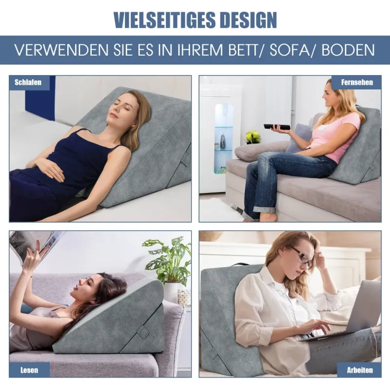 Tento viacúčelový vankúš 7 v 1 je ideálnou voľbou pre ľudí s problémami so spánkom, bolesťami chrbta alebo nôh.Ergonomický dizajn s vhodným uhlom sklonu sa dokonale prispôsobí telu a poskytuje optimálne pohodlie pre hlavu, krk, chrbát, nohy alebo kolená. Okrem toho má konštrukcia viacúrovňový sklon, ktorý spĺňa rôzne potreby pohodlia. čo sa týka kvality, tento vankúš je vyrobený z kvalitnej a vysoko elastickej regeneračnej peny, ktorá poskytuje skvelé pohodlie a nezhŕňa sa. Flanelový poťah je snímateľný, prateľný a má hladké zipsy. Okrem toho je vankúš vybavený praktickým držadlom na jednoduché prenášanie. Môžete ho používať kdekoľvek, či už v posteli, na pohovke alebo na podlahe! Vlastnosti: Konštrukcia 7 v 1: Tento trojuholníkový vankúš má skladací dizajn, ktorý vám poskytuje 7 rôznych spôsobov nastavenia výšky a sklonu, vďaka čomu je skvelou oporou pre vašu hlavu, krk, chrbát, nohy a kolená. Okrem toho sú k dispozícii ohľaduplné suché zipsy na zaistenie vankúša na mieste. prémiová regeneračná pena: Tento vankúš vyplnený podpornou regeneračnou penou je dostatočne pevný na to, aby si zachoval svoj tvar, a zároveň dostatočne mäkký na to, aby sa prispôsobil kontúram tela, čím vám poskytuje bezkonkurenčné pohodlie. Okrem toho je priedušný a bez zápachu. pohodlný & prateľný flanelový poťah: Poťah tohto klinového vankúša do postele je vyrobený z vysokokvalitného flanelu a je mimoriadne mäkký a šetrný k pokožke. Je tiež vybavený hladkými zipsami a je snímateľný a prateľný. Poťah môžete vybrať a vyprať v práčke. Všestranné použitie: Vankúš je ergonomicky navrhnutý tak, aby poskytoval maximálne pohodlie a oporu, takže sa vám bude pohodlne pozerať televízia, používať notebook alebo jesť v posteli a pri sedení potrebujete oporu chrbta. Okrem toho má nízku hmotnosť a praktickú rukoväť na prenášanie. skvelý darček pre zdravie: Vďaka skladaciemu dizajnu možno tento vankúš používať v rôznych uhloch, aby poskytoval dostatočnú výšku a oporu a podporoval krvný obeh a dýchanie a znižoval bolesti krku. Okrem toho je vankúš nielen ideálnou voľbou na spanie, ale aj skvelou pomôckou pri zotavovaní po operácii. Vyplnený vysoko odolnou regeneračnou penouErgonomický dizajn s uhlom sklonu na zmiernenie nepohodliaMäkký a k pokožke šetrný flanelový povrch poskytuje pohodlieĽahko sa čistí vďaka snímateľnému a prateľnému poťahuViacúčelový vankúš na podporu hlavy, Praktická rukoväť na prenášanie uľahčuje prepravuMožno ho používať 7 spôsobmi, aby vyhovoval rôznym potrebám pohodliaZipsy na oboch stranách pomáhajú vankúš upevniťVhodný na spanie, sledovanie televízie, prácu, čítanie alebo po operáciiPerfektný darček pre rodinu, priateľov alebo pre seba