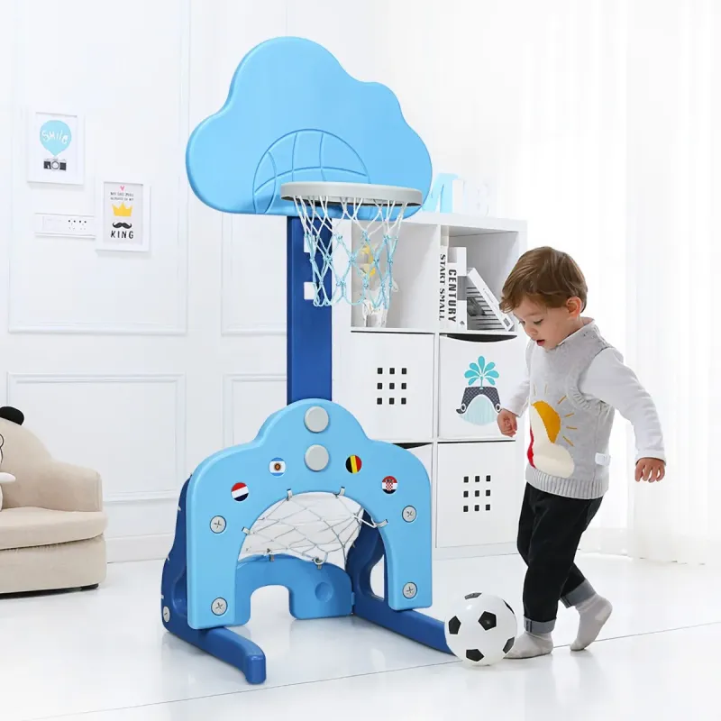 Basketbalová súprava 3 v 1 obsahuje hru na golf, basketbal a futbal. Deti sa s ňou môžu hrať nielen samy, ale aj s kamarátmi alebo rodinou a užívať si spoločné chvíle. Okrem toho je výška koša nastaviteľná od 77 cm do 116 cm, takže je vhodná pre deti vo veku od 2 do 7 rokov. Netoxické materiály a stabilná konštrukcia zaisťujú bezpečnosť dieťaťa. Vlastnosti: Detské ihrisko 3 v 1: S týmto detským basketbalovým košom môžete hrať tri športy: Golf, basketbal a futbal. Súprava obsahuje 1 basketbalovú loptu, 1 futbalovú loptu, 2 golfové loptičky a golfovú palicu. Pri hre s kamarátmi alebo samostatne si deti zlepšia svoje motorické zručnosti a zároveň sa zabavia! 5 nastaviteľných výšok: Výšku tohto nastaviteľného basketbalového koša možno nastaviť od 77 cm do 116 cm, čo umožňuje deťom rôzneho veku (od 2 do 7 rokov) hrať sa s ním a zabávať sa. Stačí len stlačiť tlačidlo na zadnej strane. Stabilná trojuholníková konštrukcia: V zadnej časti basketbalového koša sa nachádza piest. Ak ho stlačíte, môžete výrobok naplniť vodou alebo pieskom, aby ste zvýšili jeho stabilitu. K stabilite prispieva aj trojuholníková konštrukcia, ktorá chráni deti pred zranením. Jednoduchá montáž a čistenie: Aby sme vám ušetrili čas a námahu, navrhli sme súpravu tak, aby si vyžadovala len niekoľko montážnych krokov. Hladký povrch odolný voči nečistotám tiež výrazne uľahčuje čistenie a údržbu. Perfektný darček pre deti: Táto hracia súprava je ideálna na to, aby vaše deti zažili veľa zábavy. Môžu si zahrať basketbal, futbal alebo golf. S touto súpravou si môžu hravou formou zlepšiť aj svoje koordinačné schopnosti. Vlastnosti: Športové hračky 3 v 1 pre rôzne potreby 5 nastaviteľných výšok pre deti vo veku od 2 do 7 rokov Netoxický materiál a hladký povrch pre väčšiu bezpečnosť Stabilná trojuholníková konštrukcia Ideálna na použitie v interiéri aj exteriéri, napríklad v obývačke, na balkóne, v záhrade atď. Jednoduchá montáž a podrobné pokyny Perfektný darček pre deti, podporuje koordinačné schopnosti