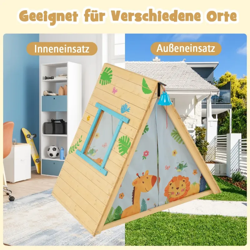 Hľadáte hračku, ktorá by využila energiu vašich detí? Naša hracia súprava 2 v 1 je ideálnou voľbou. Obsahuje hrací stan, v ktorom sa deti môžu schovať alebo odpočívať, a lezeckú stenu, na ktorej sa deti môžu hrať. Roztomilé závesy na dverách môžu tiež chrániť súkromie detí. Modrý zvonček a veľké okno prispievajú k zábave. A je dostatočne priestranný, aby sa doň zmestili 2 deti vo veku od 3 do 8 rokov, takže sa deti môžu zabávať so svojimi kamarátmi. Navyše materiál z jedľového dreva bez obsahu BPA umožňuje vysokú odolnosť a bezpečnosť. Vďaka nosnosti 30 kg a trojuholníkovej konštrukcii je lezecká stena stabilná a len tak ľahko sa nekýve. Vďaka suchým zipsom sa tiež ľahko pripevňujú a odnímajú naše závesy na dvere. Vlastnosti: Viacúčelový domček na hranie pre deti: Naša hracia súprava 2 v 1 pre deti pozostáva z 1 lezeckej steny a 1 realistického domčeka na hranie pre deti. Má tiež malý zvonček, veľké bočné okno a roztomilý kreslený vzor, vďaka ktorému je pre deti oveľa zábavnejší. Vďaka tejto hracej súprave môžu deti rozvíjať svoje sociálne zručnosti, motorické schopnosti a koordináciu rúk a nôh. Dostatočne veľký priestor na odpočinok a hranie: Tento domček na hranie s rozmermi 115 cm (D) x 77 cm (Š) x 100 cm (V) ponúka priestranný priestor na hranie pre 2 deti vo veku od 3 do 8 rokov, ktoré sa v ňom môžu schovávať, liezť alebo hrať. Na druhej strane tento detský stan s roztomilými závesmi na dverách ponúka aj súkromný kútik pre deti na čítanie kníh alebo zdriemnutie. Prírodný materiál z jedľového dreva: Náš hrací stan vyrobený z kvalitného jedľového dreva je vhodný pre deti, je bez zápachu, neškodný a neobsahuje BPA, čo je bezpečné pre malé deti. Okrem toho materiál z jedľového dreva zaručuje vysokú odolnosť proti vode a oderu, takže je vhodný na použitie v interiéri aj exteriéri. Stabilná trojuholníková konštrukcia: Detský domček na hranie s pevnou trojuholníkovou konštrukciou zostáva na zemi stabilný a nekolíše sa ani nezrúti. Stena na lezenie unesie hmotnosť až 30 kg. Okrem toho skrutkové upevnenie a silné priečne tyče zlepšujú celkovú odolnosť a stabilitu. Jednoduchá montáž a údržba: Náš drevený domček na hranie sa dodáva s jednoduchým návodom a všetkým potrebným príslušenstvom, takže montáž zvládnete rýchlo a jednoducho. Suché zipsy vám pomôžu bez námahy pripevniť naše závesy na dvere. Okrem toho vodovzdorný lakovaný povrch uľahčuje údržbu. Vlastnosti: Dvere sa dajú používať na ochranu pred poškodzovaním a na ochranu proti poškodzovaniu:Konštrukcia 2 v 1 (domček na hranie a lezecká stena) poskytuje nekonečnú zábavu Dostatok priestoru pre 2 deti (3-8 rokov) na schovávanie, lezenie, odpočinok alebo hru Podporuje sociálne zručnosti, Podporuje sociálne zručnosti detí, motoriku a koordináciu rúk a nôh Vybrané jedľové drevo pre dlhú životnosť a bezpečné používanie Ideálne na použitie v interiéri aj exteriéri Pevná trojuholníková konštrukcia zabezpečuje stabilitu Dodatočné upevnenie pomocou skrutiek a silné priečniky poskytujú dodatočnú stabilitu Suchý zips na lepšie upevnenie dverových závesov Ilustrovaný návod a všetko potrebné príslušenstvo na rýchlu montáž Vodoodolný náter a dverové závesy na jednoduchú údržbu