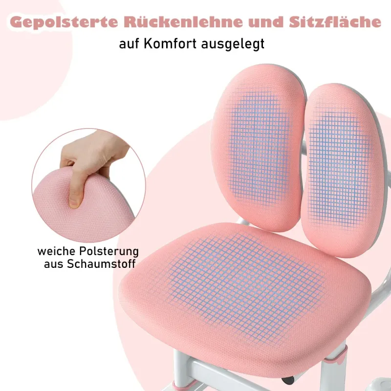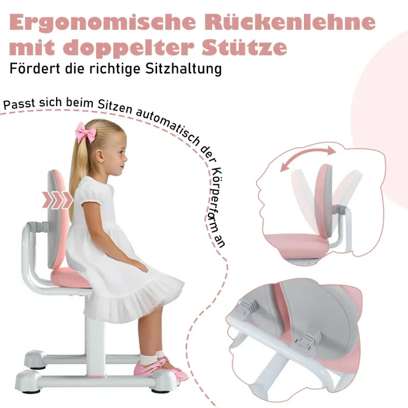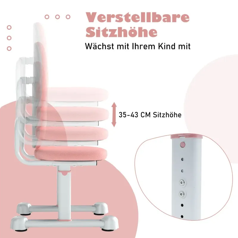Zaistite pohodlie a oporu svojho dieťaťa s touto detskou kancelárskou stoličkou! Táto detská kancelárska stolička má nastaviteľnú výšku sedadla a je vhodná pre deti od 3 rokov. Ergonomické dvojité operadlo sa prispôsobí krivkám vášho dieťaťa a podporuje zdravé držanie tela. Táto štúdiová stolička je vyrobená z pevného kovového rámu a ponúka stabilitu a odolnosť s nastaviteľnými opierkami na nohy pre nerovné podlahy. Čalúnené operadlo a sedadlo poskytujú maximálne pohodlie s mäkkým penovým polstrovaním, ideálne pre dlhé sedenie. Vlastnosti: Výškovo nastaviteľné sedadlo: Vďaka všestrannému nastaveniu výšky sedadla od 35 cm do 43 cm táto detská kancelárska stolička rastie s vaším dieťaťom. Vďaka tejto vlastnosti je stolička ideálna pre deti rôzneho veku a veľkosti. Vhodný vek: od 3 rokov. Ergonomické operadlo: Táto detská počítačová stolička je vybavená ergonomickým dvojitým operadlom, ktoré sa automaticky prispôsobí krivke sediacej polohy. Znižuje napätie a podporuje zdravšie držanie tela pri sedení, čo je nevyhnutné pre rastúce deti. Robustná konštrukcia: Táto detská stolička je vyrobená z pevného a robustného kovového rámu a zaisťuje odolnosť a stabilitu. Nastaviteľné opierky nôh vyrovnávajú nerovnosti podlahy a zaisťujú, že stolička vždy zostane stabilná. Pohodlný dizajn: Vaše dieťa si užije maximálne pohodlie s polstrovaným operadlom a sedadlom. Mäkké penové polstrovanie zvyšuje pohodlie stoličky a zabraňuje nepohodliu pri dlhom sedení. Všestranný a štýlový doplnok: Elegantný dizajn a praktické vlastnosti tejto detskej stoličky z nej robia vynikajúci doplnok do každej študijnej miestnosti, kreatívneho stola alebo čitateľského kútika. Rozmery sedadla: 38 cm x 34 cm x 35-43 cm (D x Š x V). Vlastnosti: Navrhnutá s ergonomickým operadlom s dvojitou oporou; Pomáha podporovať správne držanie tela; Vhodná pre rastúce deti s nastaviteľnou výškou sedadla; Vyrobená z pevného kovového rámu pre dlhú životnosť; Vybavená nastaviteľnými opierkami nôh; Má mäkko polstrované operadlo a sedadlo; Vhodná na učenie, písanie, kreslenie, čítanie atď.