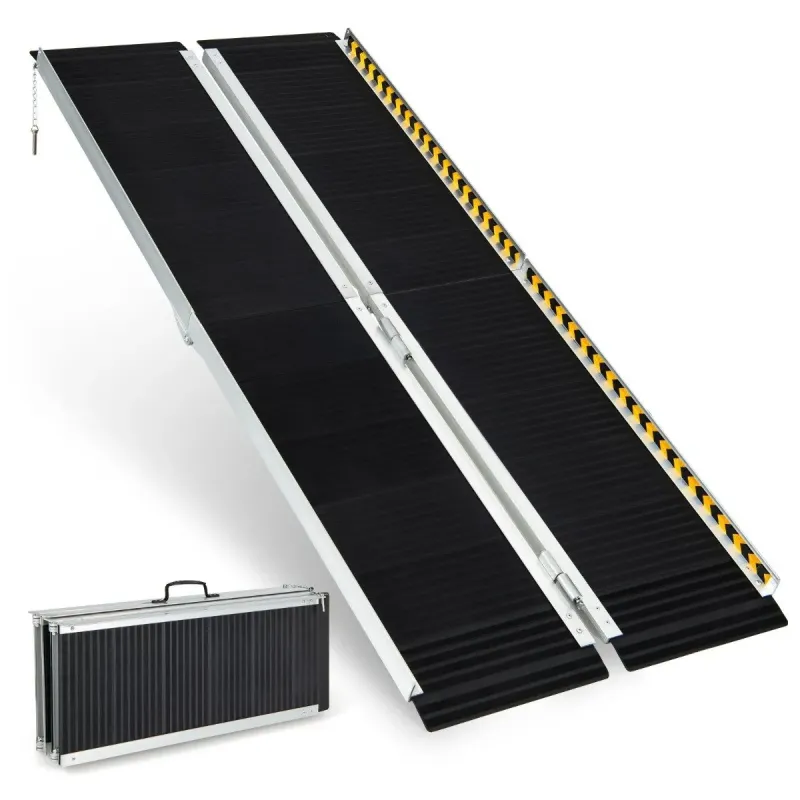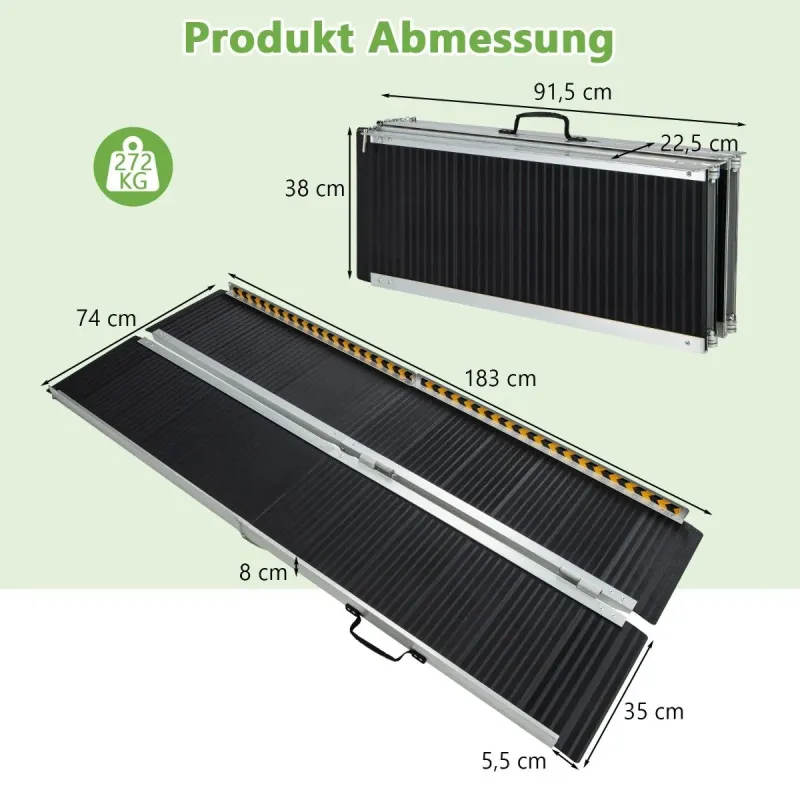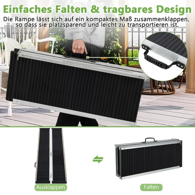 Zúfalo hľadáte rampu pre invalidné vozíky, ktorá zaručí bezpečnosť a pohodlie? Potom máte šťastie! Prechodová doska a protišmykový povrch našej rampy spoločne zlepšujú prispôsobenie sa podlahe, poskytujú maximálnu stabilitu a minimalizujú riziko pošmyknutia a pádu. Okrem toho má naša rampa jednoduchú skladaciu konštrukciu, takže ju môžete zložiť do kompaktných rozmerov na úsporu miesta pri skladovaní a prenášanie bez námahy. Vďaka robustnému hliníkovému rámu je táto rampa skonštruovaná tak, aby vydržala. Tento výrobok je vyrobený z pevného a nehrdzavejúceho hliníkového materiálu a spája v sebe ľahkú prenosnosť s robustnou stabilitou a oporou. Naša rampa je vhodná aj na širokú škálu aplikácií. Poskytuje bezpečný a stabilný prístup pre rôzne potreby, od ručných invalidných vozíkov až po elektrické vozíky, kočíky, vozíky a ďalšie. Bezpečnosť je našou najvyššou prioritou, preto je naša rampa premyslene navrhnutá a na oboch stranách vybavená reflexnými výstražnými nálepkami. Tým je zabezpečená maximálna viditeľnosť a minimalizuje sa riziko pádu. V neposlednom rade sú rampa vďaka bezpečnostným čapom a robustným závesom ešte odolnejšia. Vlastnosti: Prechodová doska a protišmykový povrch: Prechodové dosky na spodnej strane tejto rampy zlepšujú prispôsobenie sa podlahe a minimalizujú riziko pošmyknutia alebo pádu. Protišmykový povrch poskytuje dodatočnú trakciu a robí rampu bezpečnou a stabilnou pre plynulé a bezproblémové prechody. Jednoduché skladanie a prenosná konštrukcia: Vďaka funkcii jednoduchého skladania možno rampu zložiť do kompaktnej veľkosti, čím sa ušetrí miesto a uľahčí sa jej preprava. Vezmite si ju so sebou, kamkoľvek pôjdete, a zabezpečte si, že bude k dispozícii všade, kde ju budete potrebovať. Robustný hliníkový rám: Táto rampa je vyrobená z robustného a nehrdzavejúceho hliníkového materiálu a je konštruovaná tak, aby vydržala. Vďaka ľahkému materiálu je preprava hračkou, zatiaľ čo robustný rám poskytuje stabilitu a oporu. Široké použitie: Naša prenosná rampa pre invalidné vozíky má nosnosť 272 kg. Táto rampa poskytuje bezpečný a stabilný prístup pre rôzne vozidlá alebo asistenčné zariadenia, od ručných invalidných vozíkov až po elektrické invalidné vozíky, kočíky, vozíky a ďalšie. Väčšia bezpečnosť: Táto prenosná prahová rampa je premyslene navrhnutá s reflexnými výstražnými nálepkami na oboch stranách, ktoré poskytujú maximálnu viditeľnosť a minimalizujú riziko pádu. V neposlednom rade bezpečnostný kolík a robustné závesy poskytujú dodatočnú odolnosť. Vlastnosti: Zvýšená bezpečnosť vďaka protišmykovému povrchu a prechodovej doske Jednoduché skladanie na pohodlnú prepravu a skladovanie Robustný hliníkový rám bez hrdze na dlhodobé používanie Široké použitie pre invalidné vozíky, kočíky a ďalšie zariadenia Reflexné nálepky na zvýšenie viditeľnosti a bezpečnosti Protišmykový povrch na bezpečné a stabilné uchopenie Ľahká a robustná konštrukcia na prepravu bez námahy Bezpečnostné čapy a robustné pánty na zvýšenie odolnosti Pôsobivá nosnosť 272 kg pre všetkých používateľov