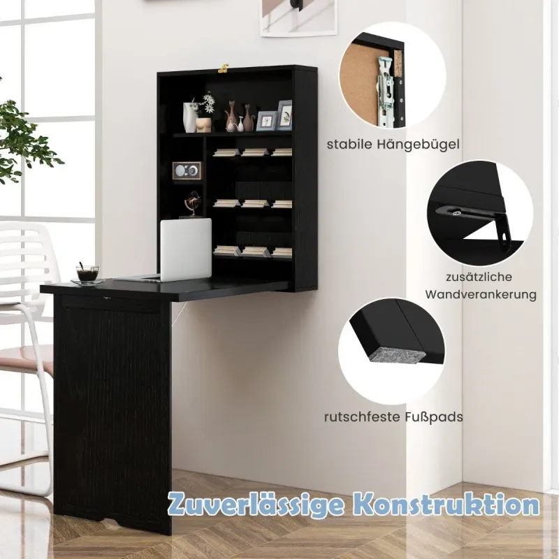 Už vás niekedy frustroval obmedzený priestor vo vašom dome, kde nemáte ako uskladniť kancelárske potreby? Náš skladací stôl na stenu vám pomôže vyriešiť problém. Za zmienku stojí, že stôl možno nainštalovať na stenu, aby sa maximalizovalo využitie priestoru vo vašej izbe. Dá sa tiež ľahko zložiť a uskladniť, keď sa nepoužíva. Pre väčšiu stabilitu je upevnený kovovými pántmi. Kombinácia širokej pracovnej dosky, otvorenej priehradky a rôznych políc ponúka dostatok úložného priestoru a utajovaného priestoru na kancelárske potreby. 3-smerovo nastaviteľné police uľahčujú skladovanie predmetov rôznych veľkostí. Tento všestranný prestaviteľný stôl zároveň ponúka dostatok pohodlia pri práci, štúdiu a iných aktivitách. Náš stôl na montáž na stenu je esteticky príjemným kúskom pre akýkoľvek dekor od rustikálneho po moderný a funguje skvele ako stolík na notebook, písací stôl, jedálenský stôl atď. Vlastnosti: Skladací stôl šetriaci priestor: Rozkladací stôl možno nainštalovať na stenu, vám pomôže uložiť cenné veci, aby ste uvoľnili podlahovú plochu. Stôl sa dá navyše ľahko zložiť a uskladniť, keď sa nepoužíva, vďaka čomu je dokonalým riešením pracovného priestoru pre domácnosť a kanceláriu pri zachovaní uprataného prostredia. Dokonalé úložné riešenie: Široká stolová doska vás nielen oslobodí od stiesnených pracovných prostredí, ale poskytuje aj ďalší úložný priestor, aby ste mali dôležité kancelárske potreby na dosah. Okrem toho 3-polohové nastaviteľné police umožňujú ukladať predmety rôznych veľkostí a 3-úrovňové sklopné prepážky uľahčujú umiestnenie kníh a iných často používaných predmetov. Všestranný konvertibilný stôl: Stôl na montáž na stenu ponúka skvelú prispôsobivosť a funguje skvele ako stolík na notebook, písací stôl a jedálenský stôl. Jeho moderný štýl a elegantný vzhľad navyše vytvárajú dokonalý vizuálny efekt a dodajú šarm vášmu domovu. Môžete ho umiestniť do obývačky, spálne, kuchyne, kancelárie alebo iných malých priestorov. Navrhnutý pre odolnosť a stabilitu: Priestorovo úsporný skladací stôl vyrobený z odolného dreveného materiálu zaisťuje robustnú a odolnú konštrukciu pre bezstarostné používanie. Silná nosná tyč navyše ešte zlepšuje stabilitu, ktorá vám lepšie slúži. Protišmykové rohože tiež chránia podlahu pred poškodením. Jednoduchá montáž a čistenie: Poskytujeme podrobné pokyny a potrebný hardvér na skrátenie času inštalácie. A hladký povrch sa ľahko čistí a udržiava. Stačí ho občas pretrieť vlhkou handričkou. Celkové rozmery (otvorený): 60 cm x 94,5 cm x 151 cm (D x Š x V), Celkové rozmery (zatvorený): 60 cm x 16 cm x 82 cm (D x Š x V) Vlastnosti: Dizajn s možnosťou montáže na stenu maximalizuje vašu podlahový priestor Jednoduché skladanie a skladovanie, keď sa nepoužíva Široká stolová doska vás oslobodí od neusporiadaného prostredia 3-poschodové úložné priestory udržujú domáce a kancelárske potreby čisté a upratané 3-smerovo nastaviteľné police sú vhodné pre rôzne potreby ukladania Pevné spojenie s vylepšenou podložkou pre spoľahlivé použitie Protišmykové podložky na nohy chránia podlahu pred poškriabaním Jednoduchý a moderný dizajn dodá vášmu domovu sofistikovaný pocit Dá sa použiť ako stolík na notebook, písací a jedálenský stôl atď. Vhodné do obývačky, spálne, kuchyne, kancelárie alebo iných malých priestorov Hladký povrch pre jednoduché čistenie a údržbu Jednoduchá montáž s návodom