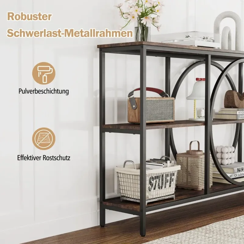 Premeňte svoj obytný priestor pomocou nášho vynikajúceho konzolového stolíka, ktorý doplní váš interiér nadčasovou eleganciou a luxusom. Elegantný kovový rám dodáva sofistikovaný nádych, zatiaľ čo rozšírená stolová doska z umelého dreva (hnedá) / umelého mramoru (biela) bez námahy dopĺňa rôzne štýly miestnosti. Tento stôl je vyrobený z odolného kovu a je vyrobený tak, aby vydržal, s práškovou povrchovou úpravou, ktorá zabraňuje hrdzi, a pevnými spojmi pre väčšiu stabilitu. Navyše, priestranný 3-poschodový dizajn poskytuje dostatok úložného priestoru pre knihy, vázy, rámy, lampy a ďalšie, vďaka čomu budú vaše základné veci usporiadané a ľahko dostupné. Pre väčšiu bezpečnosť je stôl vybavený dvoma zariadeniami proti prevráteniu, ktoré ho pripevňujú k stene, vďaka čomu je vhodný pre deti a domáce zvieratá. Celkovo sa konzolový stolík ľahko udržiava vďaka svojmu ľahko čistiteľnému povrchu a je dokonalou kombináciou štýlu a funkčnosti pre každú domácnosť. Vlastnosti: Nadčasová elegancia: Vylepšite svoj priestor s naším elegantným konzolovým stolíkom s úžasným kovovým rámom pre nádych sofistikovanosti. Široká stolová doska z umelého dreva (hnedá) / z umelého mramoru (biela) sa bez námahy hodí k rôznym štýlom miestnosti a bez námahy zdokonalí vašu domácu výzdobu Pevný, odolný kovový rám: Náš vstupný stolík je vyrobený z odolného kovu a je ideálny na dlhodobé používanie. Prášková povrchová úprava poskytuje účinnú ochranu proti korózii, zatiaľ čo pevné spoje poskytujú dodatočnú stabilitu, vďaka čomu je tento odkladací stolík spoľahlivou a odolnou voľbou pre váš domov. Veľký úložný priestor: Užite si dostatok úložného priestoru s veľkorysým 3-poschodovým dizajnom nášho stolíka v predsieni. Doska stola s dĺžkou 180 cm a 6 delených otvorených políc sa ľahko zmestí na vašu knihu, vázu, rám obrazu, lampu a úložný box, takže budete mať vo veciach poriadok. 2 integrované zariadenia proti prevráteniu: Tento príručný stolík vhodný pre deti a domáce zvieratá vám poskytne pokoj. K dispozícii sú 2 zariadenia proti prevráteniu, ktoré umožňujú pripevnenie konzolového stolíka na stenu pre dodatočnú bezpečnosť. Chráňte svojich blízkych a pridajte do svojho domova funkčný kúsok. Lepšie spracovanie: Vďaka ľahko čistiteľnému povrchu je pre vás ľahké udržiavať náš vstupný stolík a udržiavať ho stále krásny ako nový. Nastaviteľné podložky na nohy zároveň udržujú stôl vyvážený a chránia podlahu. Vlastnosti: Stolová doska z umelého dreva (hnedá) / z umelého mramoru (biela) sa bez námahy hodí do každého štýlu miestnosti Pevný kovový rám poskytuje dodatočnú stabilitu Rozšírený 3-vrstvový dizajn ponúka dostatok úložného priestoru Práškové lakovanie pre účinnú ochranu proti hrdzi. 2 zariadenia proti prevráteniu poskytujú dodatočnú bezpečnosť a chránia vaše dieťa alebo domáce zviera Ľahko čistiteľný povrch pre rýchle čistenie Nastaviteľné podložky na nohy udržujú vstupný stôl vyvážený