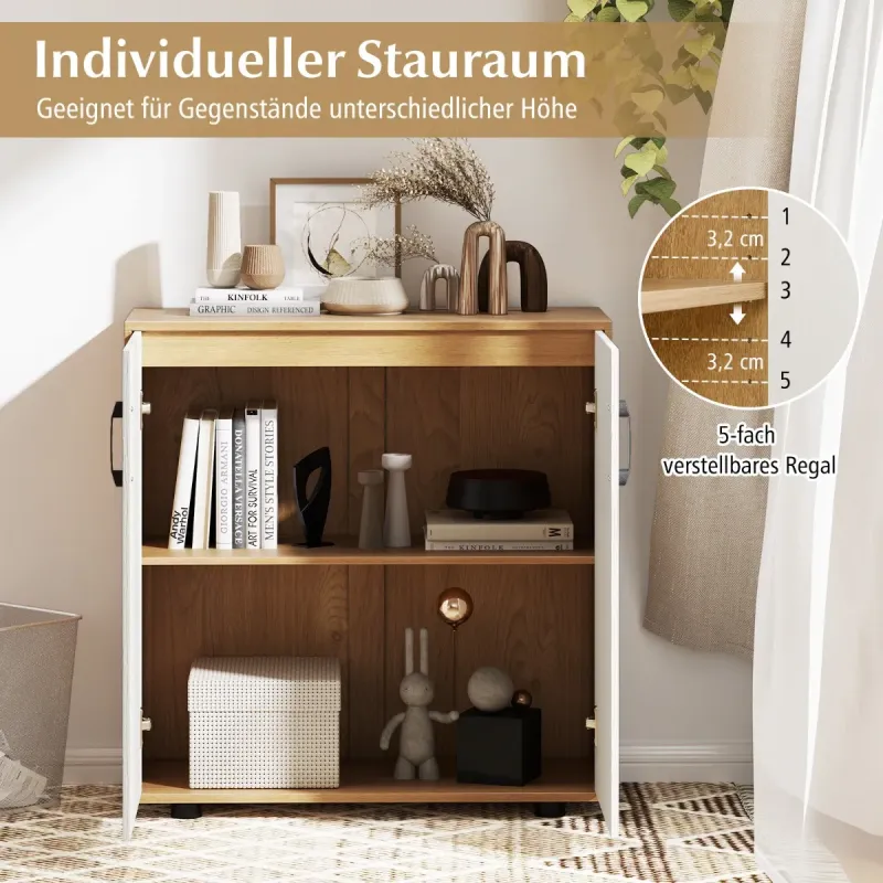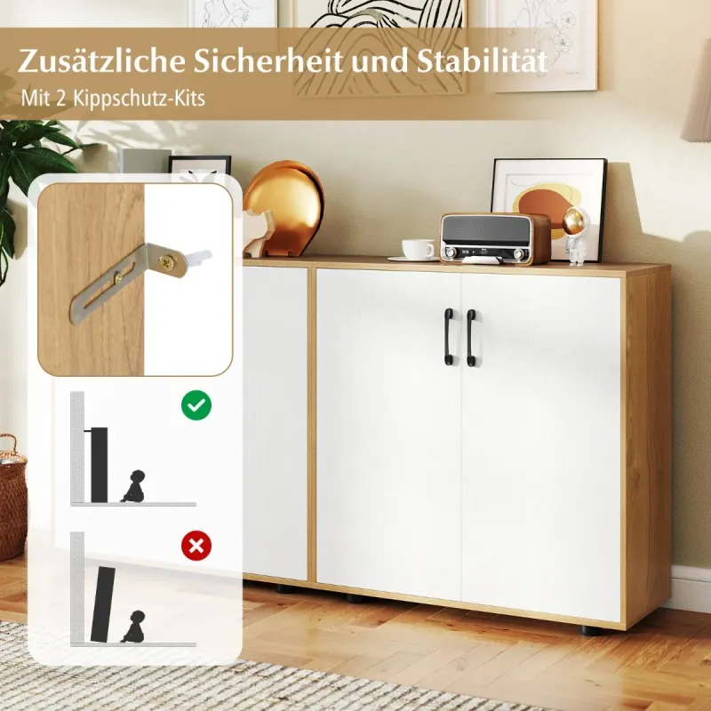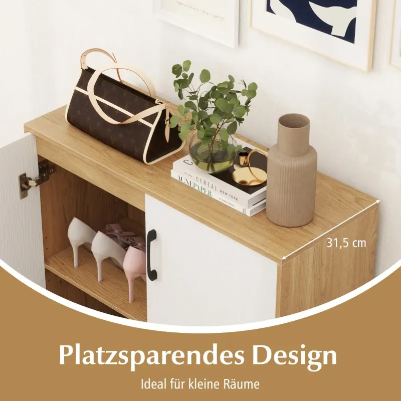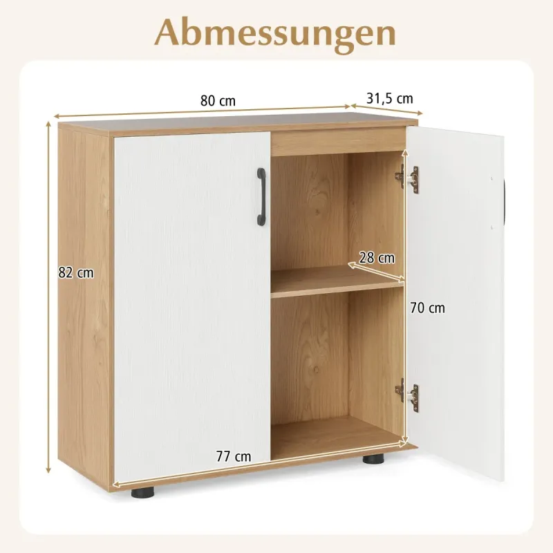 Stiesnené priestory vo vašej domácnosti? Žiadny problém! Táto elegantná úložná skrinka "všetko v jednom", ktorá môže slúžiť ako štýlový botník alebo elegantný bufetový príborník, je dokonalým riešením na úsporu miesta! Vďaka rozmerom dokonale prispôsobeným malým priestorom sa do nej nielenže zmestíte ako vo sne, ale navyše unesie až 80 kg vašich obľúbených predmetov. Prispôsobte si úložný priestor pomocou nastaviteľnej police - presne tak, ako chcete! Táto skrinka je vyrobená tak, aby vydržala, je vybavená robustnými opornými nohami a zámkami proti prevráteniu. Je tiež vybavená vysokými úchytkami a dvierkami s mäkkým zatváraním pre jednoduché používanie. Rozlúčte sa s neporiadkom a pozdravte štýl! Dodajte svojej izbe viac noblesy už teraz! Atribúty: Viac úložného priestoru na menšom priestore: Vďaka kompaktným rozmerom 80 x 31,5 x 82 cm (d x š x v) je táto úložná skriňa ideálna do malých priestorov. Či už ako elegantná skrinka na topánky alebo štýlový bufetový príborník, tento všestranný kus nábytku sa bez problémov zmestí do stiesnených kútov. Prispôsobiteľné úložné priestory: Dvojdverová skrinka má 5-stranne nastaviteľnú policu na prispôsobenie úložných riešení. Ľahko nastavte výšku police alebo ju odstráňte, aby ste vytvorili priestor na rôzne predmety. Robustná konštrukcia: Táto konzolová skrinka je vyrobená z hrubých, robustných panelov a ponúka odolnú konštrukciu, ktorá bez problémov unesie až 80 kg hmotnosti. Hladký povrch navyše zaručuje nielen atraktívny dizajn, ale aj jednoduchú údržbu. Dodatočná stabilita: Žiadne kolísanie ani prevracanie! Skriňa s akcentmi je vybavená 4 robustnými opornými nohami a 2 zámkami proti prevráteniu, ktoré zabezpečujú vynikajúcu stabilitu a chránia vaše veci a členov rodiny. Používateľsky prívetivá manipulácia: Vyššia konštrukcia rukoväte umožňuje jednoduchý prístup bez toho, aby ste sa museli zohýbať. A vďaka kovovým závesom s mäkkým zatváraním sa dvierka skrinky zatvárajú ticho a hladko. Vlastnosti: 5-cestne nastaviteľné police pre rôzne predmety Priestorovo úsporný dizajn pre malé miestnosti a úzke chodby Dodáva sa s 2 zámkami proti vyklopeniu pre väčšiu bezpečnosť a stabilitu Užívateľsky prívetivý dizajn rukoväte umožňuje ľahký prístup Kovové pánty s mäkkým zatváraním zabraňujú hlasným zvukom Hladký povrch pre jednoduché čistenie Robustné oporné nožičky zaisťujú bezpečné postavenie Ideálne do obývacích izieb, kuchýň a vstupných priestorov Vyžaduje sa montáž