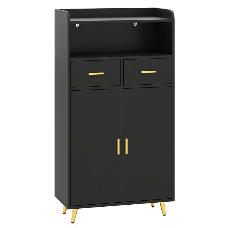 Tento všestranný kúsok obsahuje priestrannú pracovnú dosku, otvorenú priehradku, 2 zásuvky a skrinku na optimálnu organizáciu. Trojcestne nastaviteľná polica sa prispôsobí rôznym veľkostiam predmetov a zaistí dokonalé prispôsobenie vašim potrebám skladovania, od riadu až po ovocie, nápoje, papierové utierky a koreniny. Nastaviteľná polica sa dá v prípade potreby aj ľahko vybrať a vytvoriť väčší úložný priestor. atribúty: Pôsobivá možnosť úložného priestoru: Kuchynská skrinka ponúka širokú pracovnú dosku s ochranou proti pádu, otvorený priestor, dve zásuvky a 2-dverovú skrinku. Poskytuje dostatok úložného priestoru a zaručuje, že všetky vaše pomôcky budú dobre usporiadané. flexibilné možnosti odkladania: Vďaka 3-stranne nastaviteľným policiam v príborníku si môžete úložný priestor prispôsobiť svojim špecifickým potrebám. Poličku možno jednoducho nastaviť alebo odstrániť, pričom medzi jednotlivými polohami sú 6,5 cm medzery na rôzne veľkosti predmetov. lepšia stabilita & bezpečnosť: V úložnej skrinke sa stretáva bezpečnosť so stabilitou, je vybavená 2 súpravami proti prevráteniu a robustnými rozkročenými kovovými nohami. Všetky nohy sú navyše vybavené ochrannými nožičkami, ktoré zabraňujú poškodeniu podlahy. elegantný dizajn do rôznych miestností: Moderná úložná skrinka má krásne vyrezávaný povrch, ktorý doplní každý štýl interiéru. Je ideálnym doplnkom nielen do kuchýň a jedální, ale aj do obývacích izieb, kúpeľní a ďalších priestorov. pohodlné prístupové funkcie: Kuchynská úložná skrinka s rozmermi 60 x 30 x 113 cm (d x š x v) je navrhnutá na jednoduché používanie a obsahuje 2 dvierka, magnetické západky a pohodlné kovové úchyty, ktoré umožňujú bezproblémový prístup k uloženým predmetom.Vlastnosti: Vhodná na skladovanie potravín a potravín v domácnosti:Obsahuje širokú pracovnú dosku s ochranou proti páduPriehradka, zásuvky a 2-dverová skrinka pre viac úložného priestoru3-stranne nastaviteľná polica na náčinie rôznej výškyDvojité súpravy proti prevráteniu zabraňujú náhodnému prevráteniuPreložené kovové nohy poskytujú pevnú oporu a skvelú stabilituMagnetická západka zaisťuje, že dvierka zostanú pevne zatvorenéDizajn s kovovými úchytkami, ktoré uľahčujú otváranie a zatváranieDodáva sa s ochrannými nožičkami, ktoré zabránia poškriabaniu podlahyElegantný a štýlový príborník s krásne vyrezávaným povrchomPôvabná dekorácia do kuchyne, jedálne, obývačky, kúpeľne atď.Upozorňujeme, že bufetovú skrinku je potrebné zmontovať.