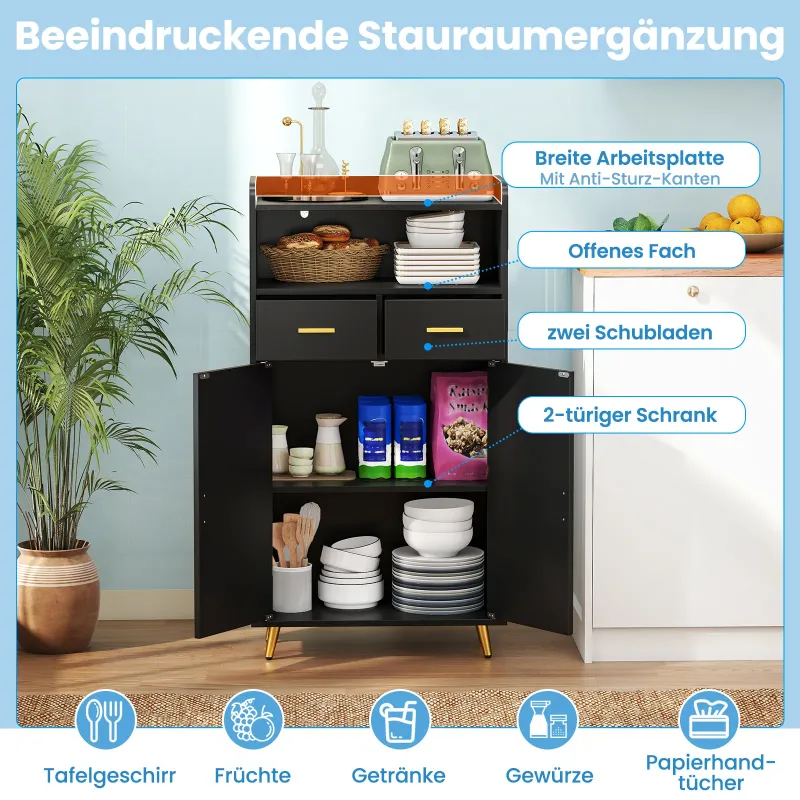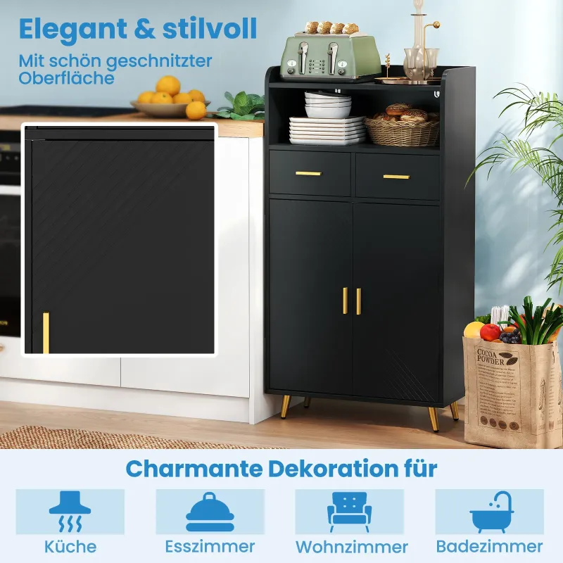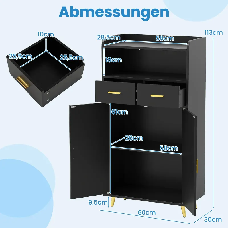 Viacúčelová skrinka s dvojitými dvierkami, 2 zásuvkami a nastaviteľnou policou Kuchynská skrinka čierna