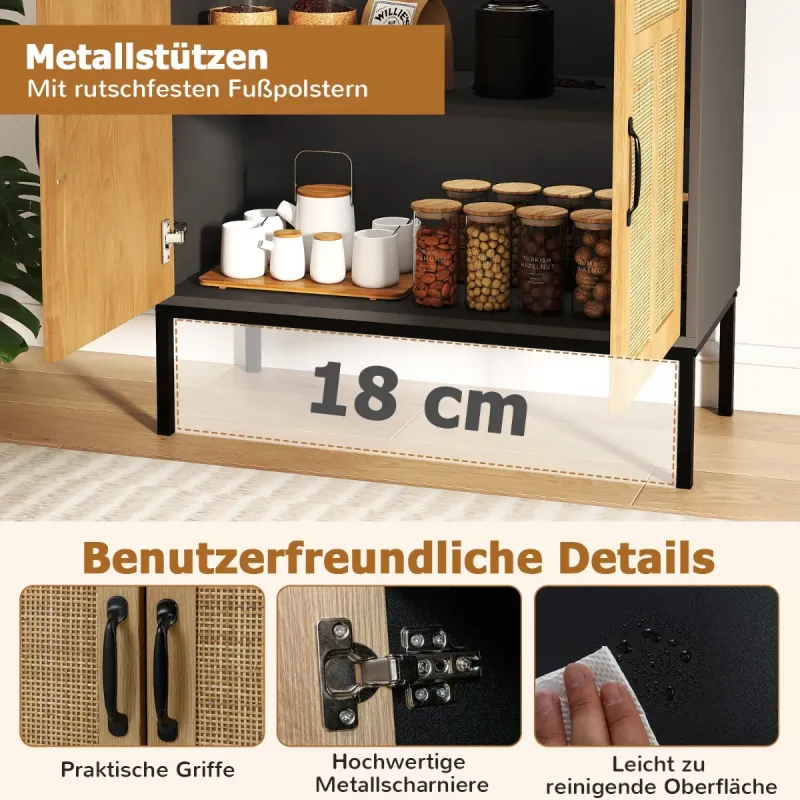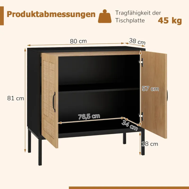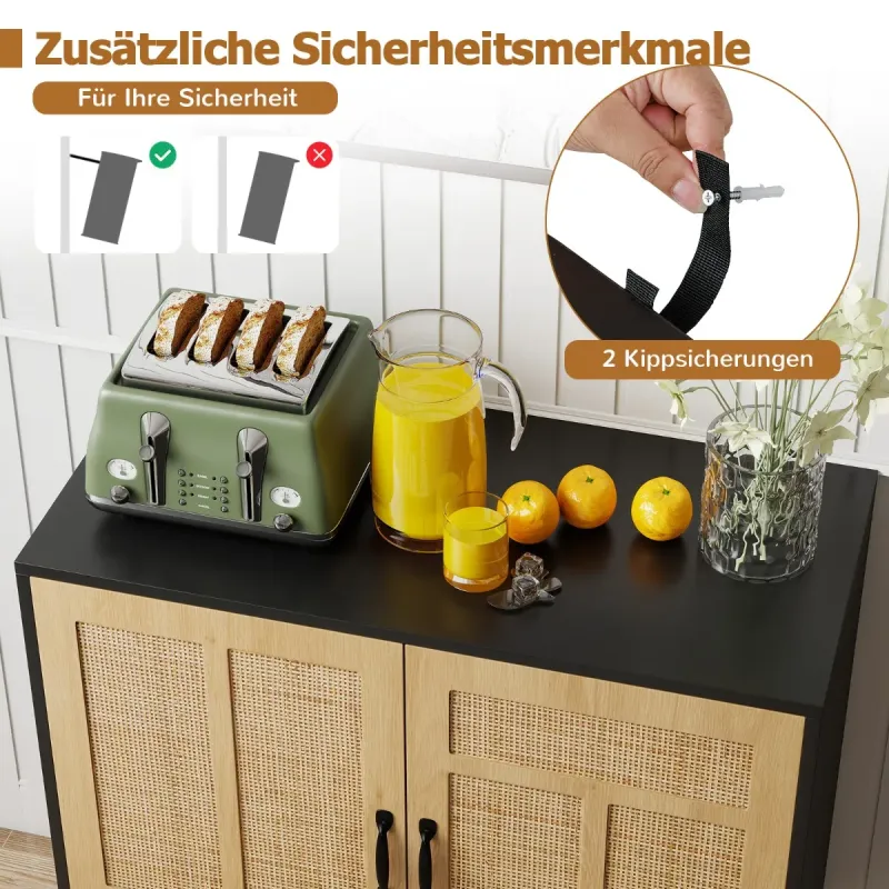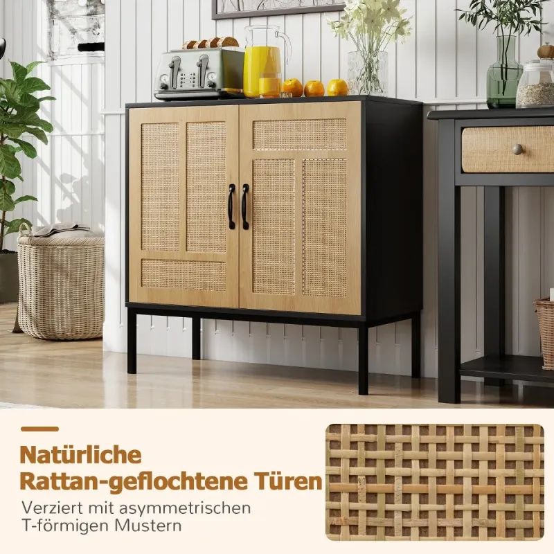 Premeňte svoj priestor boho eleganciou! Objavte tajomstvo štýlového a bezproblémového domova s našou vynikajúcou skrinkou s ratanovými dvierkami. Prírodné, výrazné asymetrické vzory sa v tomto nevyhnutnom kúsku snúbia s modernou funkčnosťou. Nastaviteľné vnútorné police sú ideálne pre milovníkov jedinečného dizajnu a umožňujú bezproblémové uloženie všetkého od kuchynských doplnkov až po predmety každodennej potreby. Je postavená ako pevnosť, no zároveň s pôvabom, unesie až 113 kg a bude vám spoľahlivo slúžiť roky. Bezpečnosť je hračkou s našimi ľahko inštalovateľnými súpravami proti prevráteniu a čistenie prízemia nikdy nie je problém. Naša skrinka je ideálna pre každú oblasť vo vašom dome, ktorá potrebuje nádych šmrncu – či už je to kuchyňa alebo chodba – a bez námahy spája užitočnosť s eleganciou. Pozdvihnite štýl svojho domova ešte dnes! Vlastnosti: Elegantné ratanové dvierka: Dodajte svojmu priestoru nádych prírodného šarmu s dvoma dvierkami zdobenými prírodným ratanom a asymetrickými vzormi v tvare T. Boho príborník nielenže vyzerá úžasne, ale prináša do vášho domova aj jedinečnú a štýlovú atmosféru. Prispôsobené úložné priestory: Rozlúčte sa s neporiadkom s dostatočným úložným priestorom skrinky na váš riad a dekorácie. 3-smerová nastaviteľná polica za dvierkami ponúka prispôsobené úložné riešenie, ktoré vám umožní usporiadať si veci presne tak, ako chcete. Robustná konštrukcia: Táto príručná skrinka je vyrobená tak, aby vydržala, s hrubými panelmi a pevnými kovovými nohami, ktoré unesú až 113 kg. Jej odolná konštrukcia zaručuje, že zostane spoľahlivým doplnkom vášho domova po mnoho rokov. Bezpečnosť a pohodlie na mysli: Buďte v pokoji s vedomím, že vaša skrinka na kávu je dodávaná s 2 sadami proti prevráteniu pre väčšiu bezpečnosť. Navyše, zvýšená výška od podlahy uľahčuje čistenie a šetrí čas a námahu. Všestranné použitie: Či už potrebujete ďalší úložný priestor v kuchyni, jedálni, obývačke alebo na chodbe, táto multifunkčná skrinka je perfektnou voľbou. Jej všestranný dizajn sa bez problémov hodí do každého priestoru a ponúka funkčnosť aj štýl. Vlastnosti: Veľký úložný priestor pre udržanie poriadku a čistoty v izbe 3-smerovo nastaviteľná polica sa prispôsobí rôznym veľkostiam Vhodná pre spotrebiče, riad, knihy a dekorácie Dvierka z prírodného ratanu dodávajú nádych bohémskej elegancie Zdobené asymetrickými vzormi v tvare T pre jedinečný vzhľad Ďalšie bezpečnostné prvky s 2 protiprevrátenými súpravami pre vašu bezpečnosť Kovové oporné nohy s protišmykovými podložkami ponúkajú spoľahlivú oporu Užívateľsky prívetivé detaily zabezpečujú príjemný používateľský zážitok Pohodlné rukoväte a kvalitné kovové pánty pre jednoduchú obsluhu Ľahko čistiteľný povrch vám šetrí čas a námahu Montáž je potrebná