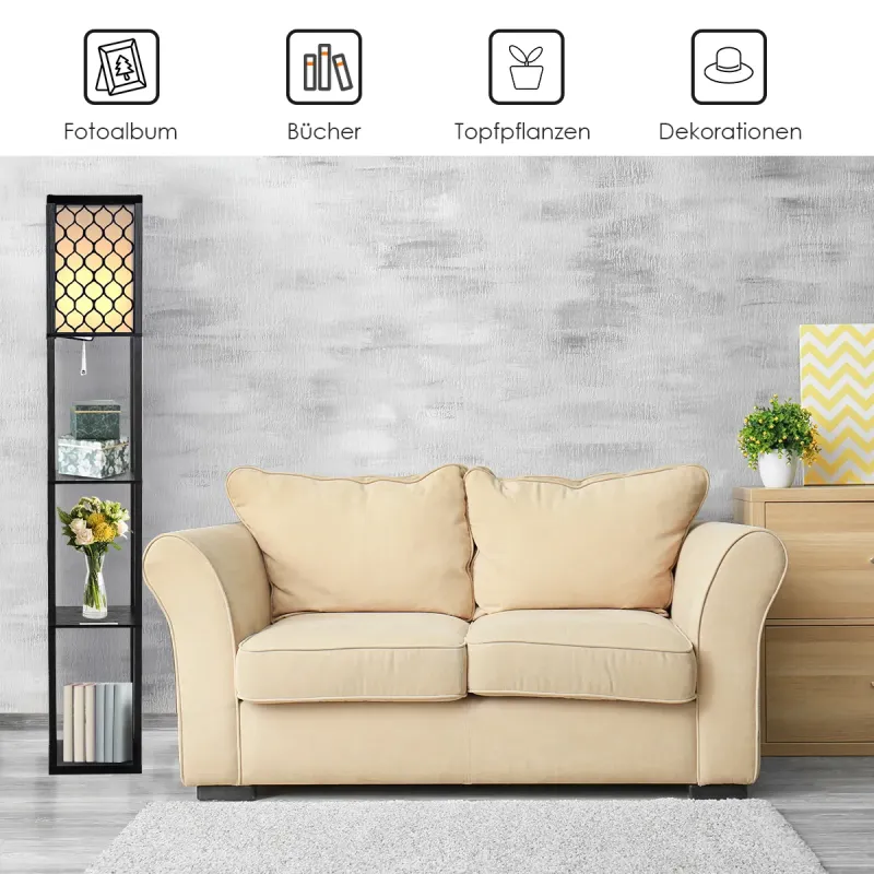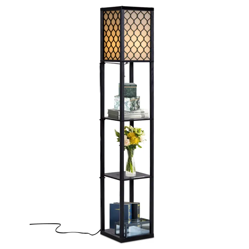 Pridajte si ho do košíka! Atribút: Stojacia lampa a police 2 v 1: Táto voľne stojaca lampa môže rozjasniť váš obytný priestor a ponúka 3-poschodové police pre pohodlie. Je to skvelá kombinácia lampy a knižnice, ktorá dokonale spája estetiku a funkciu, aby vyhovovala vašim potrebám osvetlenia a skladovania. Vysokokvalitný drevený rám: Táto stojaca lampa je vyrobená z kvalitnej MDF dosky a je dostatočne odolná a pevná na dlhodobé používanie. Polica je navyše natretá čistým čiernym povrchom, ktorý je bez otrepov a odolný voči vlhkosti, aby sa zabránilo praskaniu a opotrebovaniu.