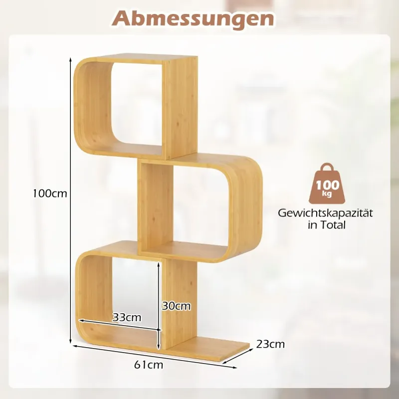 Usporiadajte si priestor udržateľným a štýlovým spôsobom pomocou tejto bambusovej knižnice! Dizajn v tvare písmena S sa postará o vizuálne atraktívnu prezentáciu, zatiaľ čo 3 priehradky uľahčujú ukladanie rôznych predmetov, od kníh až po dekoratívne akcenty. Máte obavy o bezpečnosť? Nemusíte! Naša inovatívna knižnica je vybavená ochranou proti prevráteniu, ktorá vám poskytne pokoj. Či už v obývacej izbe, pracovni alebo kancelárii, táto knižnica doplní rôzne štýly interiéru. Maximalizujte svoj obytný priestor s týmto priestorovo úsporným kúskom, ktorý sa perfektne hodí do rohov alebo k stene. Atribúty: Prírodný bambusový materiál: Táto knižnica, vyrobená z vysokokvalitného bambusového materiálu, sa vyznačuje pevnosťou a spoľahlivosťou. Prírodná povrchová úprava dodá vášmu obytnému priestoru teplo a eleganciu a zabezpečí štýl aj odolnosť. Jedinečný dizajn v tvare písmena S: Táto výrazná bambusová knižnica v tvare písmena S dodáva tradičnému ukladaniu kníh moderný nádych. Je univerzálnym doplnkom každej miestnosti, či už v obývačke, pracovni, kancelárii alebo na chodbe. Otvorená úložná plocha: Tento stojaci regál s 3 kockami rozširuje úložnú a výstavnú plochu na knihy, fotografie, črepníkové rastliny, škatule a dekoratívne predmety. Dobre rozmiestnené priehradky s úplne otvorenou konštrukciou zároveň zabezpečujú ľahký prístup. Vylepšená stabilita: Pri umiestnení k stene možno policu zaistiť pomocou zariadenia proti prevráteniu, ktoré zabráni jej kývaniu. Okrem toho protišmykové podložky pod nohy na spodnej strane zabezpečujú stabilitu a chránia podlahu pred poškriabaním. Ideálna do kompaktných priestorov: Trojúrovňová výstavná polica je navrhnutá tak, aby optimalizovala vertikálny priestor a dokonale sa zmestila do rohov. Jej kompaktné rozmery a príťažlivý dizajn sú ideálne na dodanie štýlu a organizácie do vašej domácnosti. Vlastnosti: Vhodný na umiestnenie do regálu, ktorý je vhodný na použitie v domácnosti: Vysokokvalitný bambusový materiál s bezpečnou lakovou povrchovou úpravou zaručuje dlhodobé používanie Jedinečný dizajn v tvare písmena S zvyšuje estetiku Starostlivo usporiadané priehradky udržiavajú usporiadané rôzne predmety Vybavená policou proti prevráteniu pre väčšiu stabilitu a bezpečnosť Ochranné podložky pod nohy zabraňujú poškriabaniu a poskytujú spoľahlivú konštrukciu Hrana bez triesok zabraňuje nárazom a zvyšuje bezpečnosť Prírodný vzhľad dodáva teplo a prirodzenú eleganciu každej miestnosti Ideálna do obývačky, spálne, pracovne alebo kancelárie Vyžaduje sa montáž