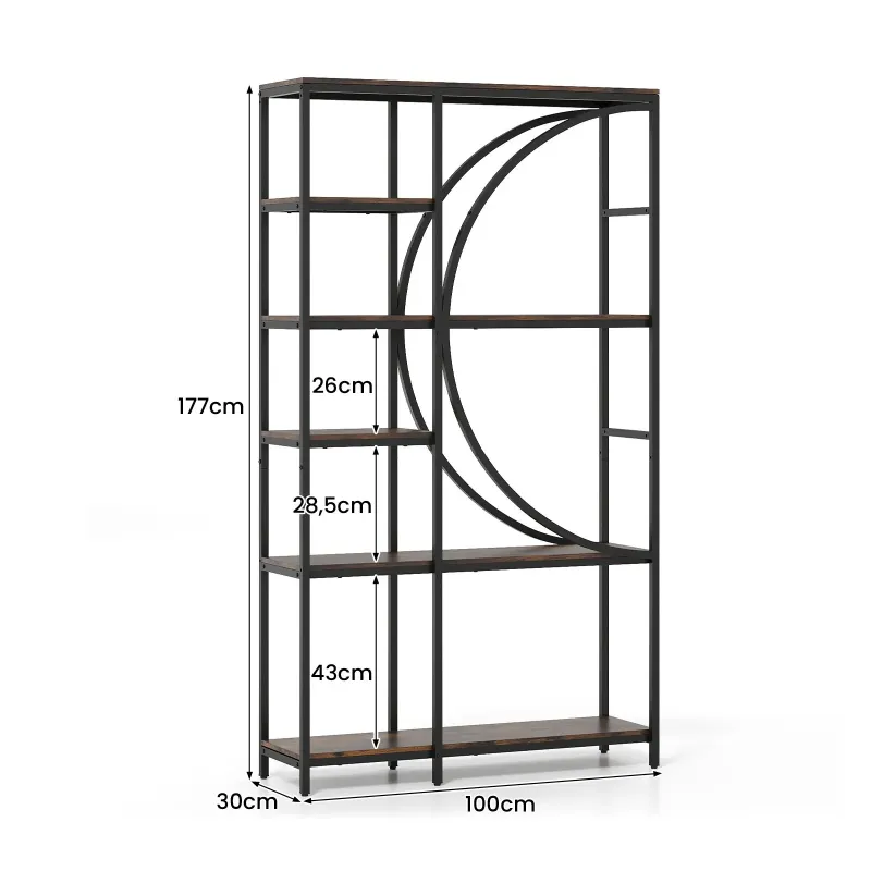 Nápadný dizajn v tvare polmesiaca je štýlovým lákadlom pre oči a zvyšuje vizuálnu príťažlivosť vášho domova. Či už chcete vystaviť svoju zbierku kníh, nastaviť dekoratívne akcenty alebo prehľadne uložiť kancelárske potreby - tento všestranný organizér spája praktickú funkčnosť s estetickým šarmom. Robustný kovový rám zaručuje stabilitu a odolnosť, zatiaľ čo mechanizmus proti prevráteniu poskytuje dodatočnú bezpečnosť a pokoj. Usporiadajte si svoje veci štýlovo s touto elegantnou geometrickou knižnicou, ktorá ideálne spája funkčnosť a dizajn. atribúty: Elegantný geometrický dizajn: Šesťúrovňová knižnica zaujme svojou polmesiacovitou siluetou a dodá vašej miestnosti jedinečný a výrazný vzhľad. Špeciálny dizajn zároveň dodá vášmu obytnému priestoru nádych sofistikovanosti. dostatok úložného priestoru: Vďaka 6 úrovniam úložného priestoru ponúka tento regál Etagere dostatok miesta na štýlové vystavenie vašich obľúbených kníh, rastlín a dekorácií. Každá úroveň je ľahko prístupná a ideálna na udržiavanie poriadku vo vašich predmetoch. spoľahlivá konštrukcia: Kovový rám s práškovou povrchovou úpravou zaručuje odolnosť a stabilný výkon. Nastaviteľné nožičky zabezpečujú aj zvýšenú stabilitu na nerovnom povrchu. súčasťou balenia je súprava proti prevráteniu: Na zvýšenie bezpečnosti je polica vybavená súpravou proti prevráteniu, ktorá zaisťuje stabilitu a bezpečnosť. Stabilné úrovne ponúkajú spoľahlivé úložné riešenie. všestranné použitie: Tento flexibilný úložný regál je vhodný ako polica na knihy, výstavná polica, úložná jednotka, rozdeľovač miestností alebo stojan na rastliny. Či už v obývacej izbe, pracovni alebo kancelárii - je funkčná aj dekoratívna.Vlastnosti:Polmesiacovitá silueta spája estetický dizajn s funkčnosťou6-poschodová knižnica s množstvom úložného a výstavného priestoruViacero otvorených priehradiek na usporiadanie fotografií, remeselníckych výrobkov alebo úložných boxovVybavená zariadeniami proti prevráteniu pre väčšiu stabilitu a bezpečnosťRobustný kovový rám pre pevnosť a odolnosťNastaviteľné nožičky zabezpečujú bezpečné postavenie aj na nerovnej podlaheNie len knižnica - ideálna do domácnosti a kancelárieDetailná povrchová úprava, ľahko čistiteľné povrchy pre minimálnu údržbu