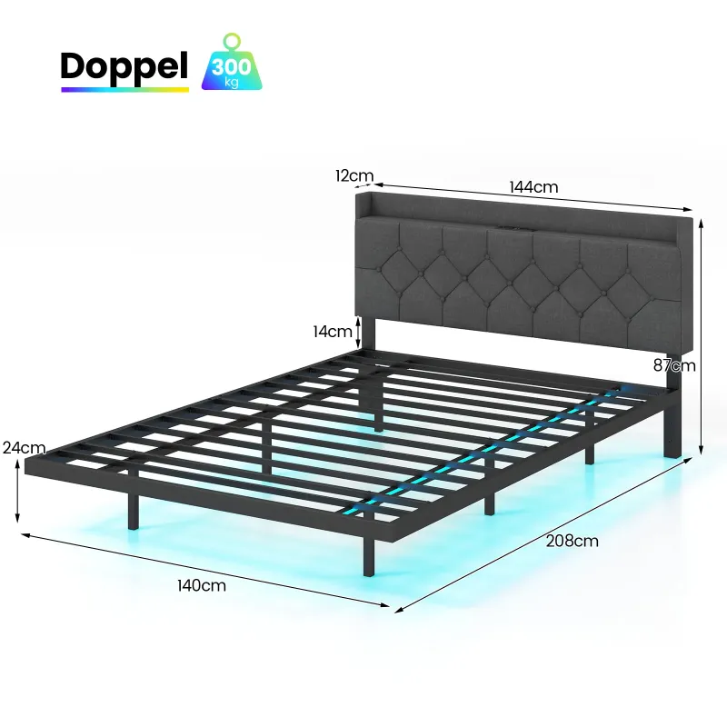 Premeňte svoj oddychový kútik na futuristickú oázu s našou modernou plávajúcou posteľou! Tento elegantný a plávajúci rám postele očarí magickou 20 cm medzerou pre bezproblémové vysávanie. Ponorte sa do budúcnosti – priamo z postele – s praktickými integrovanými zásuvkami, ktoré zaženú chaos zamotaných káblov. Pohodlné čalúnené čelo postele slúži aj ako inteligentný úložný kútik, ktorý vám poskytne elegantné objatie relaxácie. Vychutnajte si pevný kovový rám postele a zažite pokojné noci vďaka jej tichému dizajnu. Vlastnosti: Inovatívny plávajúci dizajn: Pozdvihnite štýl svojej spálne s moderným plávajúcim rámom postele, ktorý sa vyznačuje skrytými opornými nohami pre jedinečnú ilúziu vznášania. Okrem toho 20 cm medzera medzi posteľou a podlahou postačuje na vysávanie. Najmodernejšie LED osvetlenie: Ponorte sa do futuristického zážitku zo spánku s prispôsobiteľnými LED svetlami, ktoré vytvárajú dokonalú atmosféru. Tieto svetlá, ovládané pomocou smartfónu, majú nastaviteľnú farbu, režim a jas a dokážu sa meniť do rytmu hudby alebo zvukových vĺn. Integrované zásuvky: Vychutnajte si pohodlie nabíjania vďaka vstavaným zásuvkám postele veľkosti Full/Queen, vrátane dvoch zásuviek AC, portu USB a portu typu C. Majte svoje zariadenia nabité a po ruke bez zbytočných káblov. Nastaviteľné čelo postele v 3 polohách: Či už čítate, pozeráte televíziu alebo len relaxujete, polstrované čelo postele poskytuje perfektnú oporu chrbta. Viaceré predvŕtané otvory vám umožňujú nainštalovať ho v troch rôznych výškach, zatiaľ čo horná polica ponúka pohodlné úložné priestory. Bezstarostný spánok: Posteľ s plošinou je vyrobená z pevného kovového rámu a unesie až 300 kg. Nie je potrebný žiadny pružinový matrac! A pod kovovými lamelami sú mäkké podložky z peny EVA, ktoré tlmia hluk a zabezpečujú pokojný nočný spánok. Vlastnosti: Unikátna plávajúca hojdačka vytvára futuristický vzhľad Inteligentné ovládanie pomocou aplikácie s funkciami, ako je nastaviteľný jas a časovač Dostatok priestoru pod posteľou uľahčuje čistenie podlahy Čelo postele s úložným priestorom a nabíjacou stanicou ponúka veľa pohodlia Priedušná tkanina a mäkká pena pre pohodlný zážitok Čelo postele je možné nastaviť do 3 polôh pre prispôsobenú oporu Pevné kovové lamely eliminujú potrebu matraca s pružinovým roštom Vybavené bezhlučnou penou pre tichú a pokojnú noc