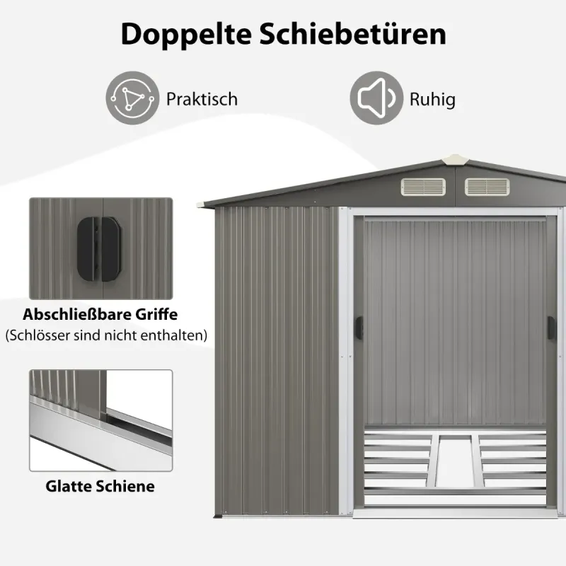Udržujte svoju záhradu alebo dvor v čistote s našou skladovacou halou! Táto búda s rozmermi 260 cm x 207 cm x 180 cm ponúka priestor pre veľké náradie a bicykle, vďaka čomu je vhodná nielen ako miestnosť na náradie, ale aj ako vonkajší sklad, prístrešok pre vaše odpadkové koše alebo priestor pre domáce zvieratá. Náš prístrešok je vyrobený z pozinkovanej ocele a má farebnú oceľovú škridlovú strechu a má vynikajúcu odolnosť voči poveternostným vplyvom a stabilitu. Tiež sme pridali 4 vertikálne rúrky na všetkých štyroch stranách celkového rámu, aby sme zlepšili odolnosť voči vetru. Vlastnosti: Všestranný veľký prístrešok na náradie: Tento prístrešok na náradie s rozmermi 260 cm x 207 cm x 180 cm má veľmi priestranný interiér a možno ho použiť nielen ako prístrešok na náradie na uskladnenie kosačiek na trávu, rebríkov, lopatiek atď., ale aj ako odkladací priestor pre bicykle používať invalidné vozíky a skateboardy. Okrem toho je tiež dobrou voľbou ako prístrešok pre vaše odpadkové koše, aby vám priniesol upratanú záhradu! Zosilnená stabilná konštrukcia: Náš prístrešok je vyrobený z nedeformovateľnej a nehrdzavejúcej pozinkovanej ocele, má vynikajúcu odolnosť a stabilitu. Ešte lepšie je, že sme pridali 4 zvislé kovové rúrky na 4 strany rámu hlavného tela, aby sme zlepšili odolnosť voči vetru a stabilitu produktu. Viaceré humanizované detaily: So 4 vetracími otvormi udrží náš záhradný domček veci suché vďaka vynikajúcej ventilácii. Dodatočný základ môže navyše chrániť vaše predmety pred mokrou podlahou. K dispozícii sú pohodlné posuvné dvere a vstavaná rampa na uľahčenie prístupu pre veľké nástroje alebo vybavenie. Dizajn odolný voči poveternostným vplyvom: Inteligentný dizajn šikmej strechy umožňuje našim skladovacím prístreškom rýchlo odvádzať vodu v daždivých dňoch, aby sa zabránilo hromadeniu vody. Okrem toho je strecha vyrobená z vysoko kvalitných farebných oceľových škridiel, ktoré sú vodotesné a izolované, čo pomáha predĺžiť životnosť prístrešku. Bezproblémová montáž: Poskytujeme podrobné pokyny a 2 páry rukavíc, ktoré vám pomôžu zostaviť záhradný domček a umožnia vám praktickú zábavu s rodinou. Poznámka: Všetko dôležité príslušenstvo k búde je dodávané samostatne v 3 krabiciach. Vlastnosti: Veľký vnútorný priestor je ideálny pre bicykle, rebríky, kosačky na trávu atď. 4 zvislé rúrky na všetkých štyroch stranách rámu zlepšujú stabilitu Vybavené základňou na ochranu predmetov pred vlhkosťou 4 elegantné mriežky uľahčujú prúdenie vzduchu, aby predmety zostali suché Posuvné dvere s rampou pre ľahký prístup s vozíkmi Pozinkovaná oceľová konštrukcia je odolná voči korózii a pevná Šikmá strecha zaisťuje rýchly odtok vody v daždivých dňoch Spĺňa vaše rôznorodé potreby ako kôlňa na náradie, smetisko, sklad Obsahuje pár rukavíc na ochranu rúk pri montáži Všetky diely sú zabalené v 3 krabiciach a dodané