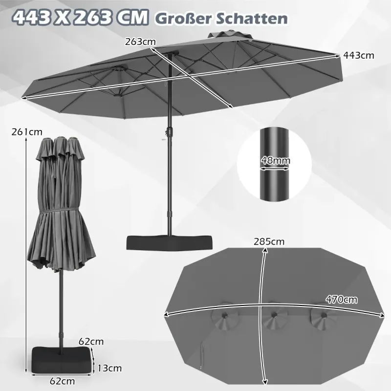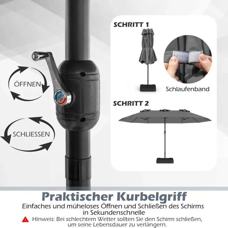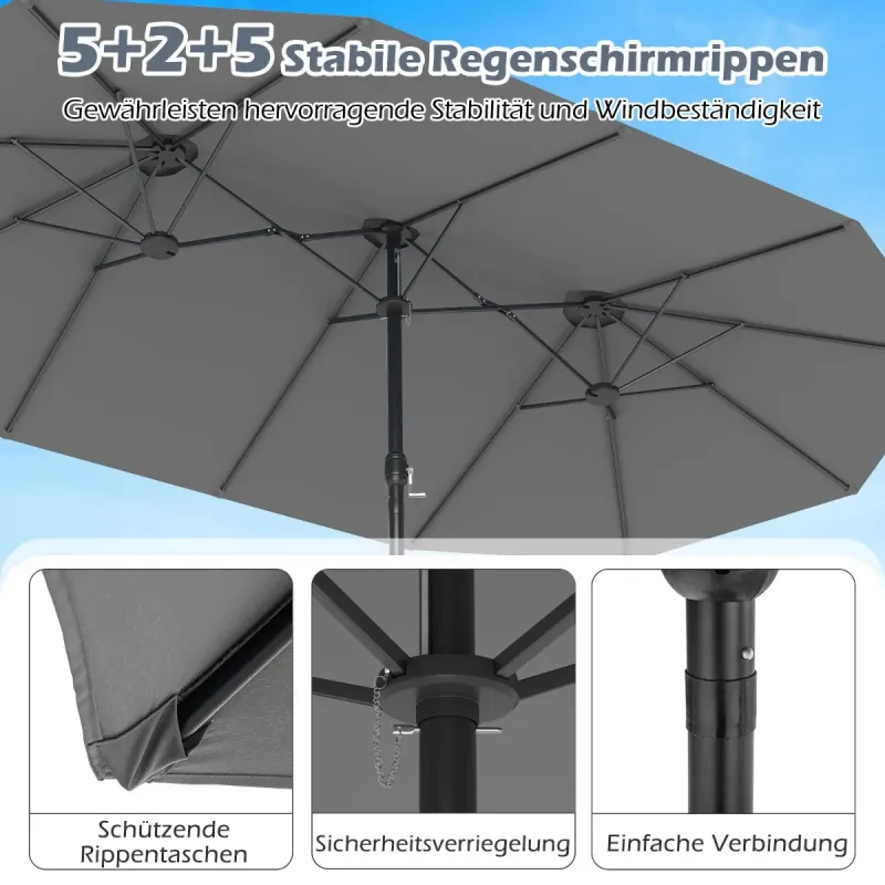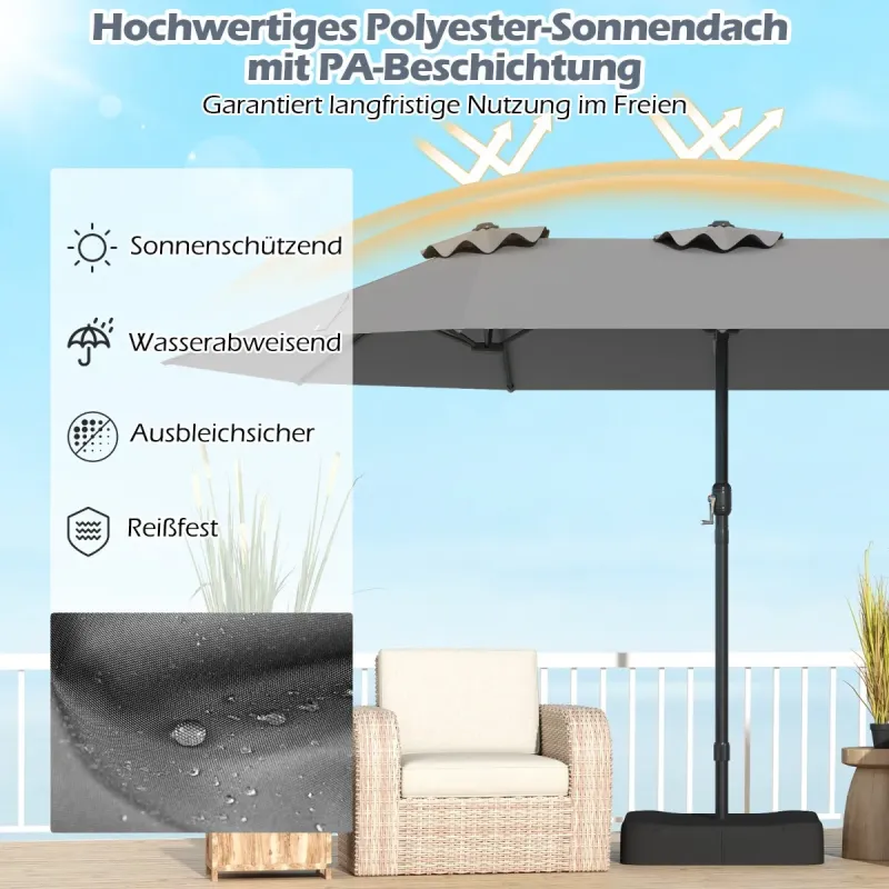 Dvojitý slnečník so stojanom s UPF 50+ a kľukou Slnečník Záhradný slnečník Slnečník na terasu